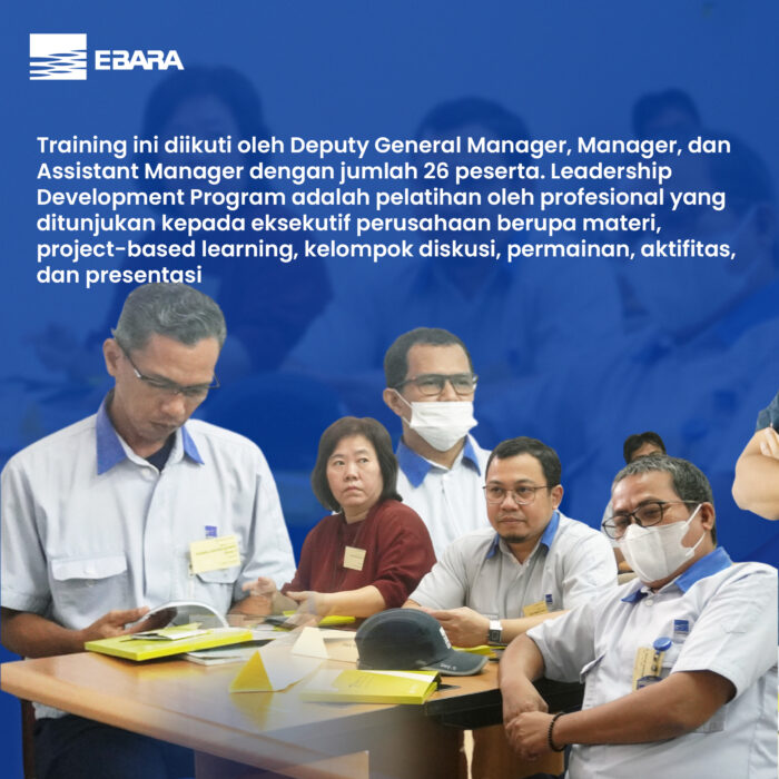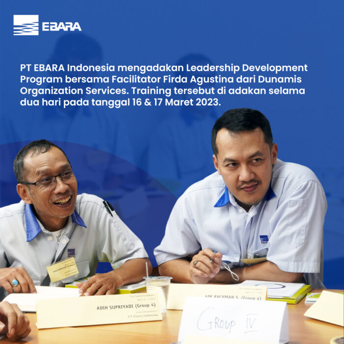 PT EBARA Indonesia mengadakan Program Pengembangan Kepemimpinan bekerja sama dengan Dunamis Organization Services. Pelatihan tersebut berlangsung selama dua hari pada tanggal 16 dan 17 Maret 2023.