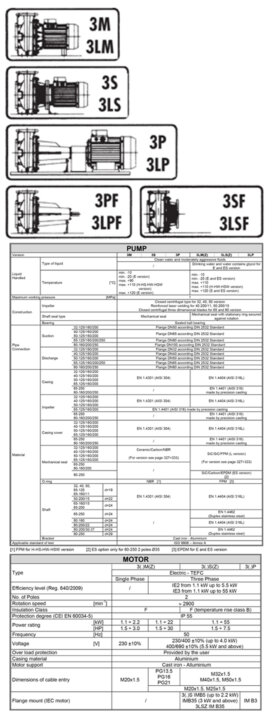 - End suction centrifugal pumps built in stainless steel AISI 304 (3 Series) and AISI 316L (3L Series) in Compliance with EN 733