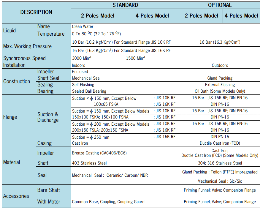 - Easy removal and maintenance, BPO (Back Pull Out) system allows all rotating elements can be removed without disconnecting suction and discharge pipe work.