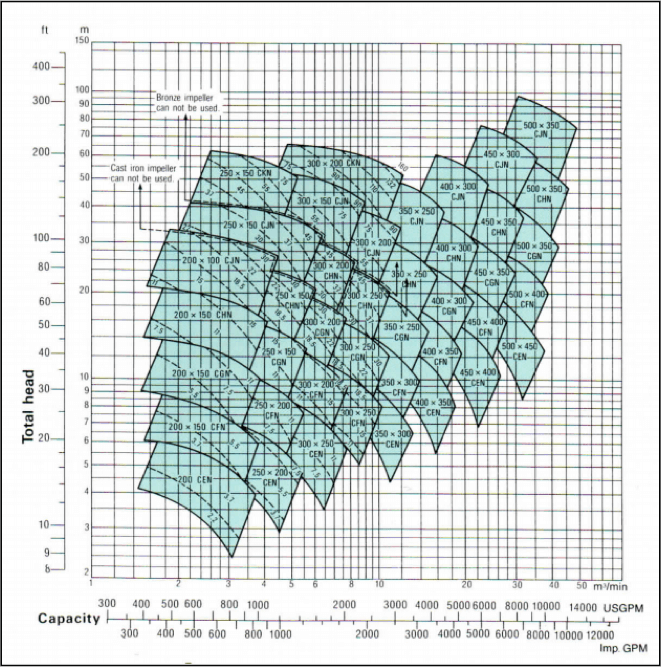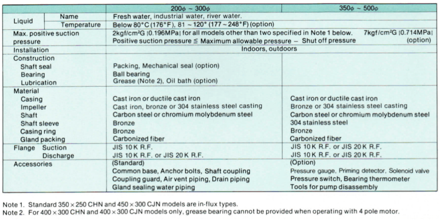 - Double suction with advanced design of suction performance ensures high suction lifts even with large capacities. Compared with conventional double suction design, with the possibility of using a high speed motor, such system and related facilities can be installed in a small area.