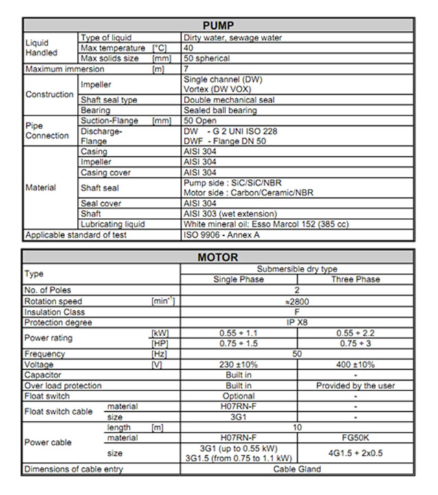 - Submersible Sewage Pump – DW-DW VOX